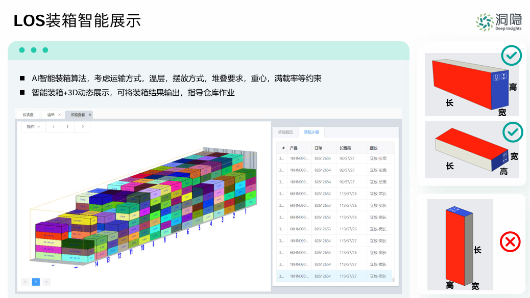 減少規劃時間與人力成本:系統在幾分鐘內完成復雜計算并輸出可視化3D方案,替代了耗時且易錯的人工排柜,提升了倉儲作業整體效率。